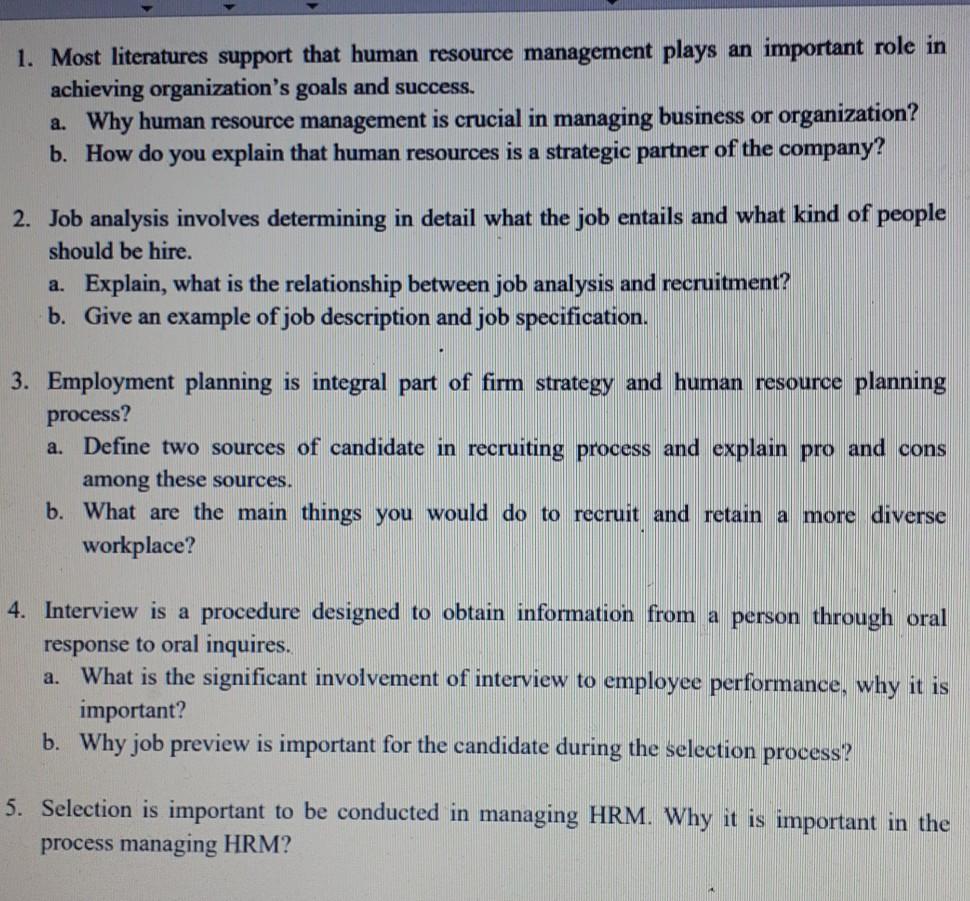 Solved 1 Most Literatures Support That Human Resource Chegg Com